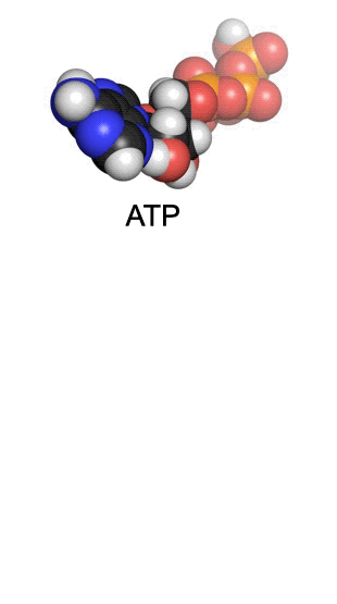 2-4-3 ATP är kroppens energivaluta För att musklerna ska kunna dra ihop sig och skapa kraft behövs energi. Vi får energi från maten vi äter. Maten innehåller kolhydrater, fetter och proteiner. Dessa bryts ner till sina minsta beståndsdelar i mag-tarmkanalen och tas upp till blodet för att användas eller lagras. När kroppens celler behöver energi används en molekyl som heter ATP. ATP är en förkortning av adenosintrifosfat. ATP bildas i cellerna när energin som finns i näringsämnena frigörs och omvandlas till energi som cellerna kan använda. Den största mängden ATP bildas i cellernas mitokondrier där framför allt fett och kolhydrater bryts ned i närvaro av syre. Det kallas ibland för cellandning. Förutom ATP bildas även vatten och koldioxid. ATP används i alla processer i kroppen som kräver energi. Till exempel används ATP för att vi ska kunna ta upp näring till blodet från tunntarmen, för att producera urin och för att skicka en nervsignal. När ATP används frigörs energi genom att ett enzymklipper bort den yttersta fosfatgruppen. Kvar blir molekylen ADP, adenosindifosfat. Den återanvänds för att bilda ny ATP. |