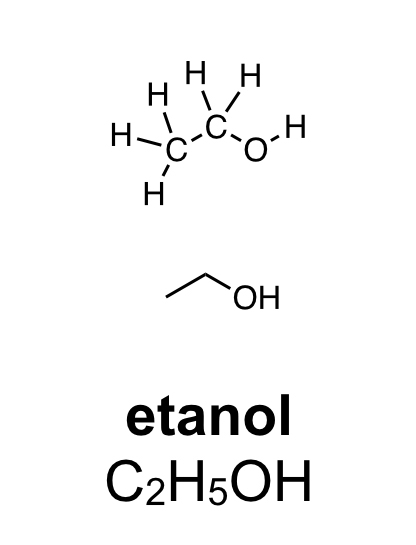 1-2-7 Alkoholer liknar vatten och har ofta svag lukt ![]() Alkoholer innehåller en hydroxylgrupp. Den består av en syreatom som binder till en väteatom (OH). Hydroxylgruppen binder i sin tur till en kolatom. Den enklaste alkoholen är metanol. Den består av en kolatom och en hydroxylgrupp. Etanol, som finns i öl, vin och sprit är en alkohol med två kolatomer och en hydroxylgrupp. Rödsprit, som bland annat används som bränsle, består av etanol. Den röda färgen är tillsatt för att varna för att den inte kan drickas. Alkoholer har sällan särskilt stark lukt. |
